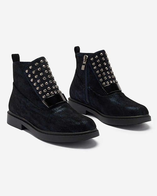 Mädchenstiefel mit dekorativem Schaft in Marineblau Leisla - Schuhe