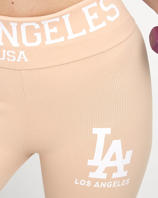 Puderige, gerippte Damenleggings mit weißen Zeichen - Kleidung