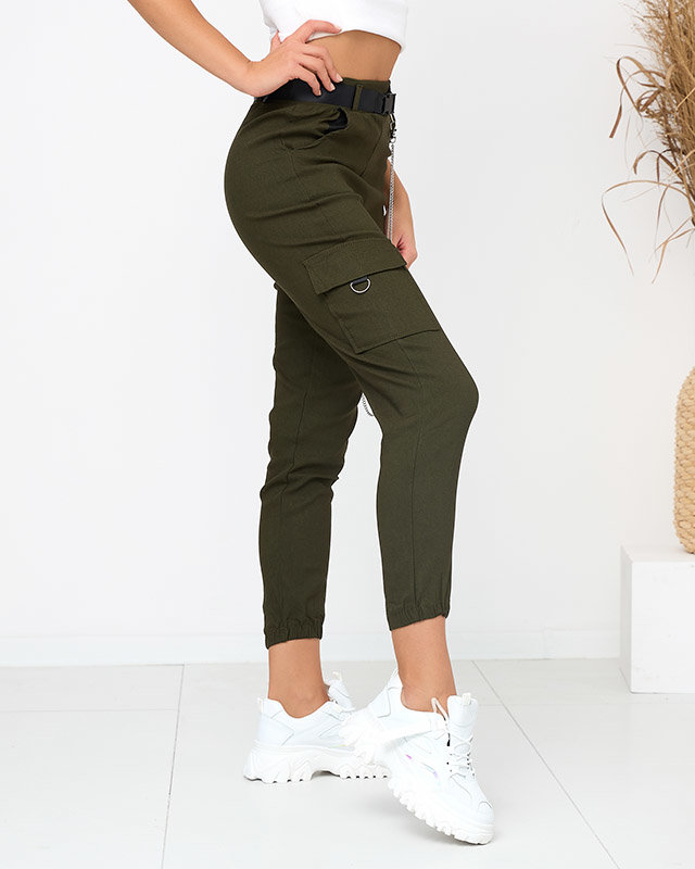 - Einzigartige Stoff-Cargohose für Damen aus elastischem Material. Das Modell hat einen breiten elastischen Bund und 4 Eingrifftaschen. Das Produkt ist mit einem dünnen Vlies isoliert. Zusätzlich ein Gürtel und eine Kette! HINWEIS: Messgenauigkeit (+/-) 1 c