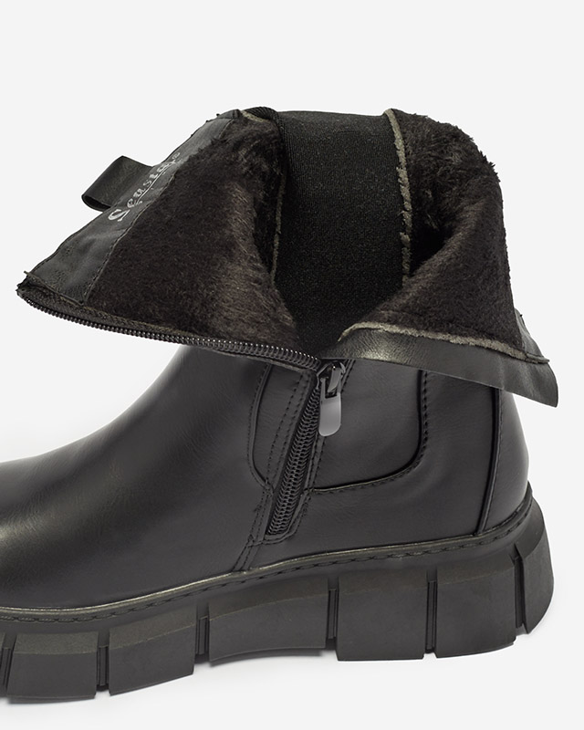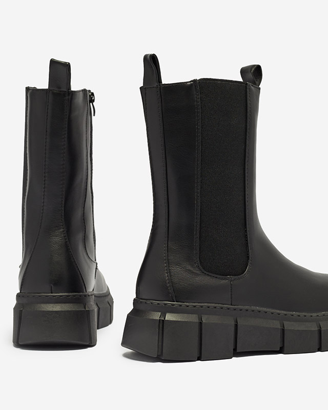 - Stylische Damenstiefel aus umweltfreundlichem Leder. Die Stiefel haben einen Reißverschluss, eine elastische Innensohle an der Seite, eine Gummiplattform und eine weiche, wärmende Innenseite. SCHWARZE STIEFEL DAMENSTIEFEL COUELL