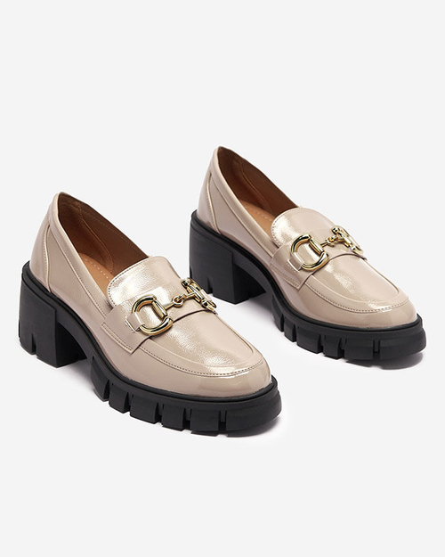 Hellbraune lackierte Damenmokassins mit Ornament Neriea - Footwear