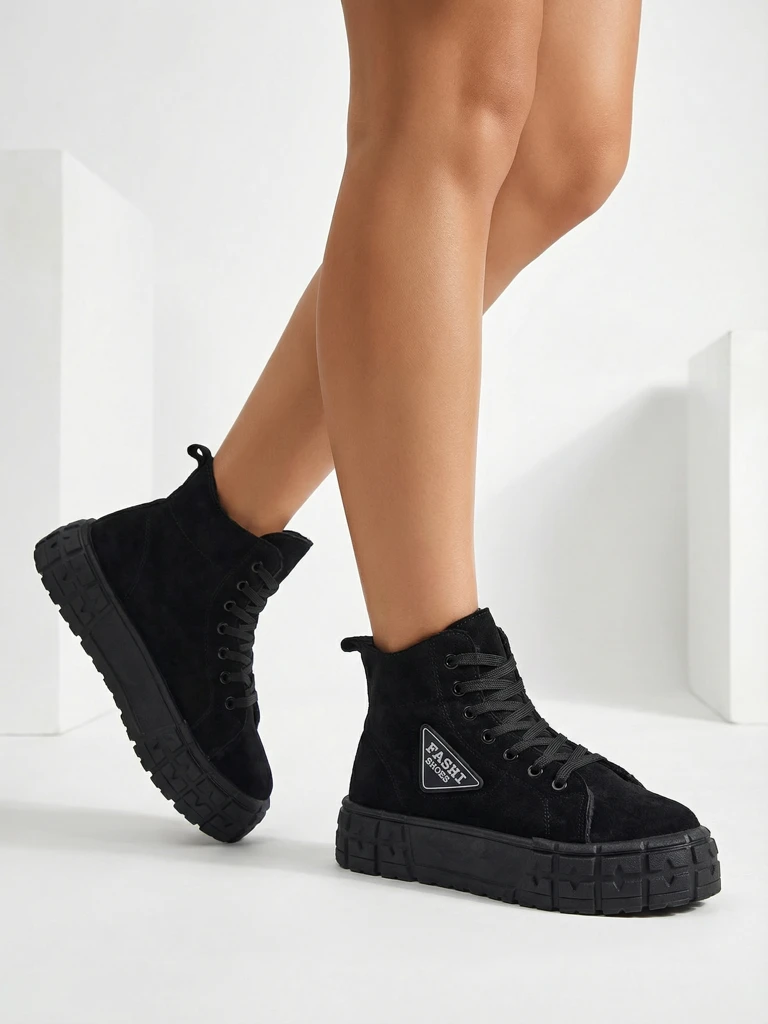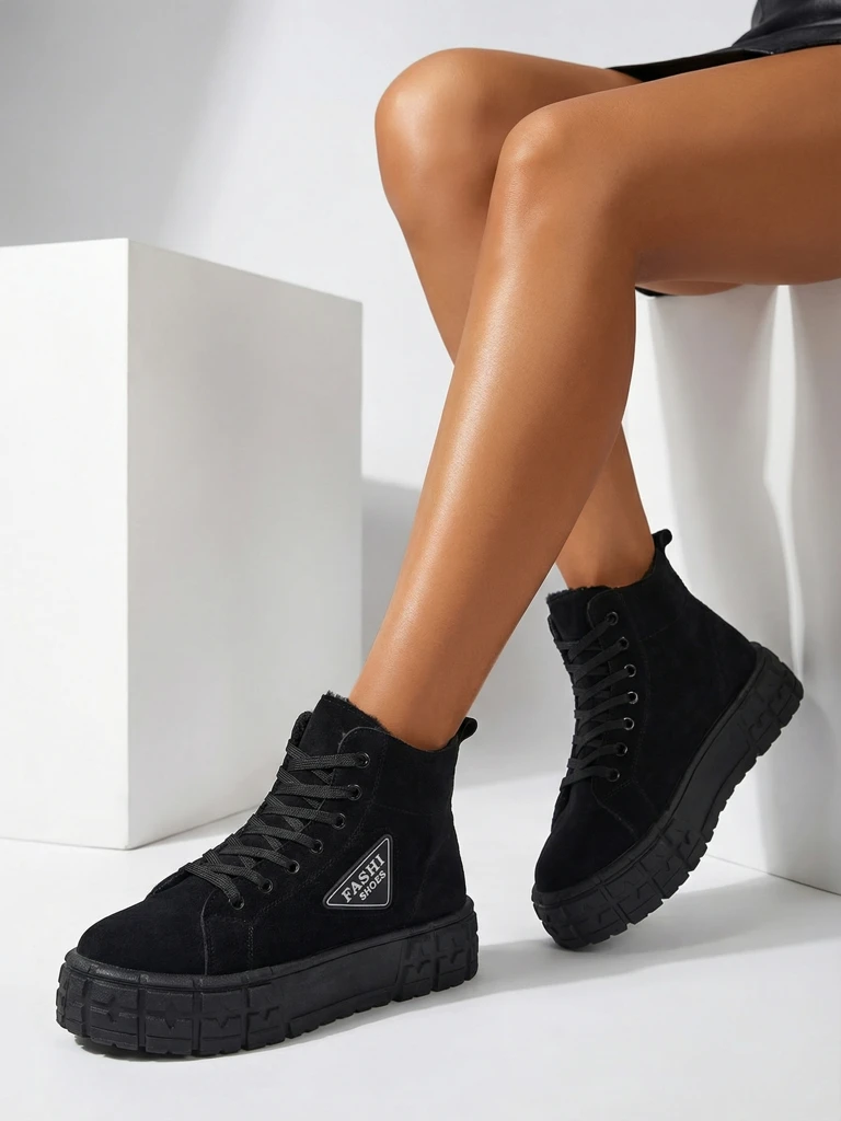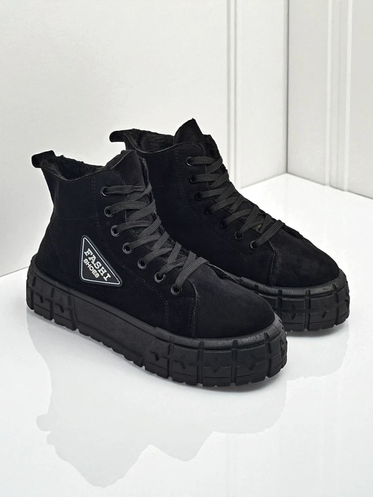 - Super stylische Damen Stiefeletten auf einer massiven Plattform, gefertigt aus Öko-Wildleder. Das Modell ist geschnürt, das Innere mit Fell gefüttert. Der Schaft ist mit einem Aufnäher mit Schriftzug verziert. Das ideale Paar für jeden Tag! SCHWARZE GEFÜT