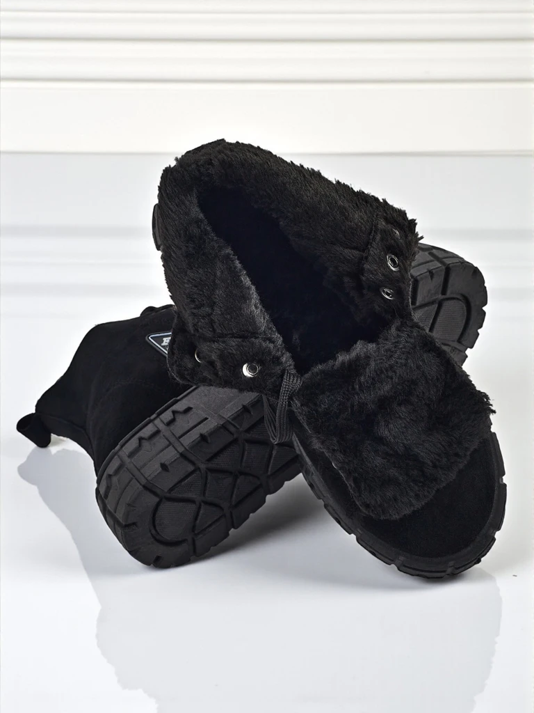 Damen Schuhe in Schwarz, gefertigt aus hochwertigem ökologischem Wildleder, bieten Komfort und ein modisches Aussehen. Dank der Verwendung einer Woll-Einlegesohle bleiben die Füße auch an kalten Tagen warm. Die Sohlenhöhe beträgt 4 cm, was subtile Zentimeter hinzufügt, ohne auf Komfort zu verzichten. Der Schaft mit einer Höhe von 10,5 cm und einer Breite von 12 cm (für Größe 38) sorgt dafür, dass sich die Schuhe perfekt an jeden Fuß anpassen.