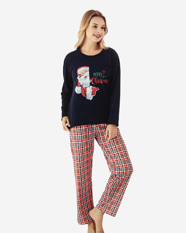 Marineblauer Schlafanzug für Damen mit Weihnachtsaufdruck- Kleidung