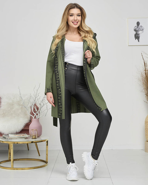 Dunkelgrüner Damenmantel a'la Mantel mit Ornament - Kleidung