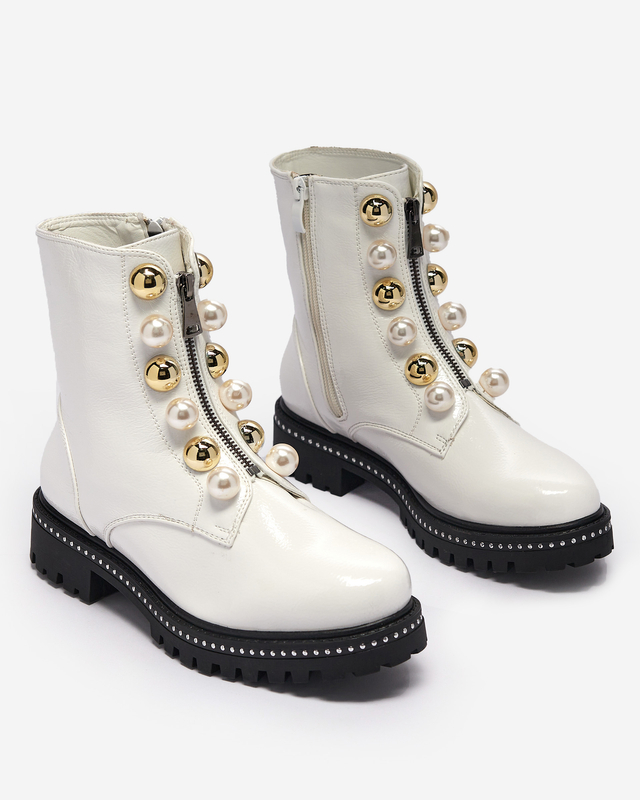 OUTLET Weiße Damen-Bagger-Stiefel mit Perlen Cedirao - Schuhe