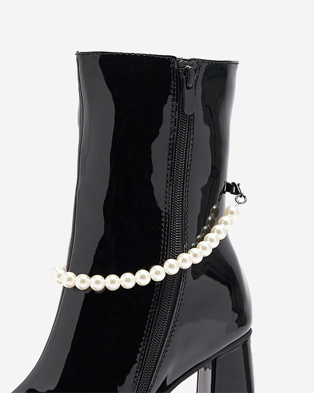 • Damenstiefel mit hohem Schaft, Modell aus lackiertem Ökoleder. Schaft mit Reißverschluss, Mitte mit weichem Fell gefüllt. Außerdem abnehmbare Dekoration auf dem Schaft. SCHWARZE ISOLIERTE STIEFEL FÜR FRAUEN RASSLA