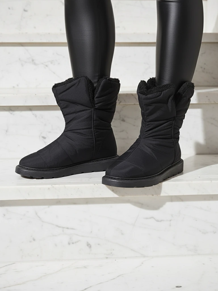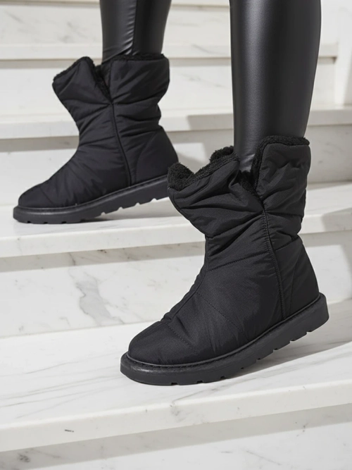 - Stilvolle Damen-Schneestiefel, das Obermaterial ist aus einem kunststoffähnlichen Material gefertigt. Das Innere ist mit dickem Fell gefüttert, die Schuhe sind zum Hineinschlüpfen. SCHWARZE WINTERSTIEFEL DAMEN-SCHNEESTIEFEL KALIOLI
