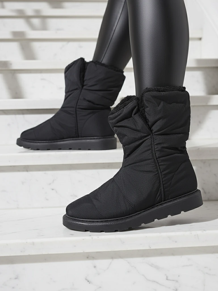 : 1. Kombinieren Sie die Stiefeletten mit schwarzen Leggings und einem Oversize-Pullover für einen Alltagslook. 2. Kreieren Sie ein elegantes Outfit mit einem langen Kleid und einer Jacke im Parka-Stil. 3. Kombinieren Sie sie mit Mom-Jeans und einem klassischen Sweatshirt für einen lässigen, urbanen Look.