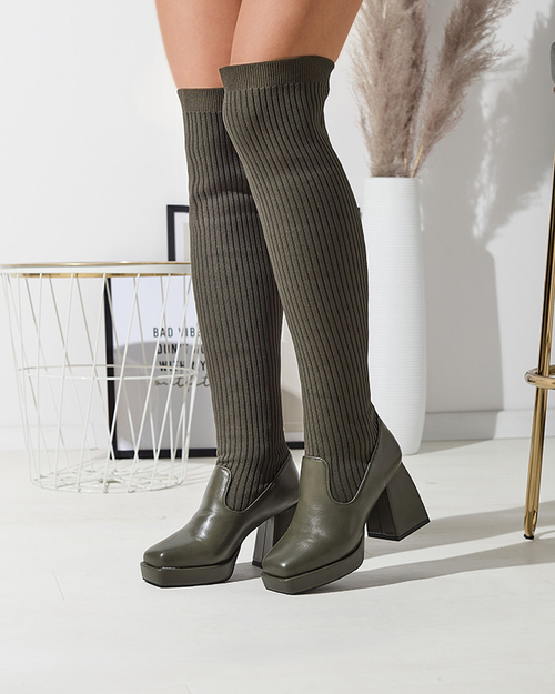 Dunkelgrüne Overknee-Stiefel für Damen Sarioga - Footwear