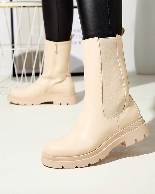 Beige Damenstiefel mit flachem Absatz Vedesa - Kleidung