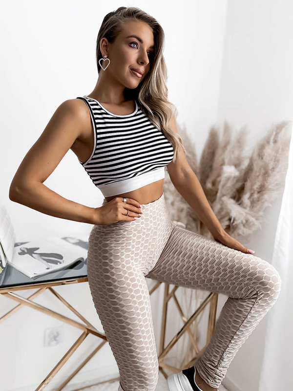 - Sportliche Damen-Leggings mit interessantem Muster. Das Produkt ist aus elastischem Material gefertigt und hat einen elastischen Bund. Ein Muss im Kleiderschrank einer jeden Frau! Messgenauigkeit (+/-) 1 cm.