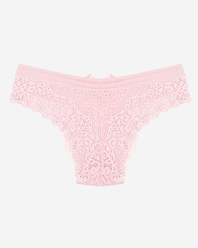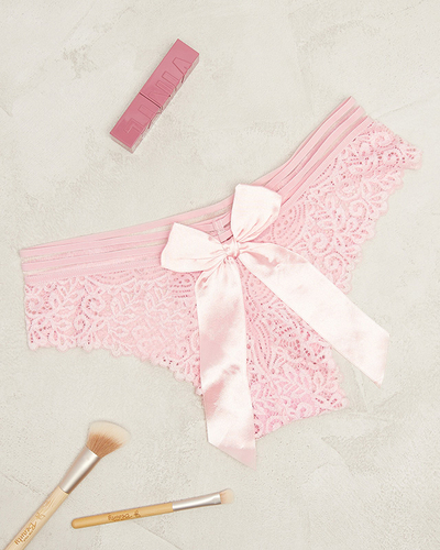 Rosa Damen-Spitzen-BH-Slip mit Schleife - Unterwäsche