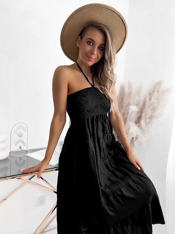 - Klassisches, luftiges Kleid in Midi-Länge. Das trägerlose Modell ist im Brustbereich eingefasst, gefüttert und mit einem Bindeband im Nacken versehen. Eine ideale Wahl für Sommertage! HINWEIS: Messgenauigkeit (+/-) 1 cm.
