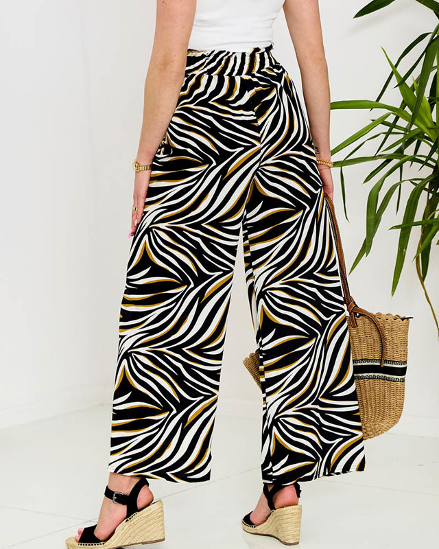 Gemusterte Damen-Palazzohose in Schwarz- Kleidung