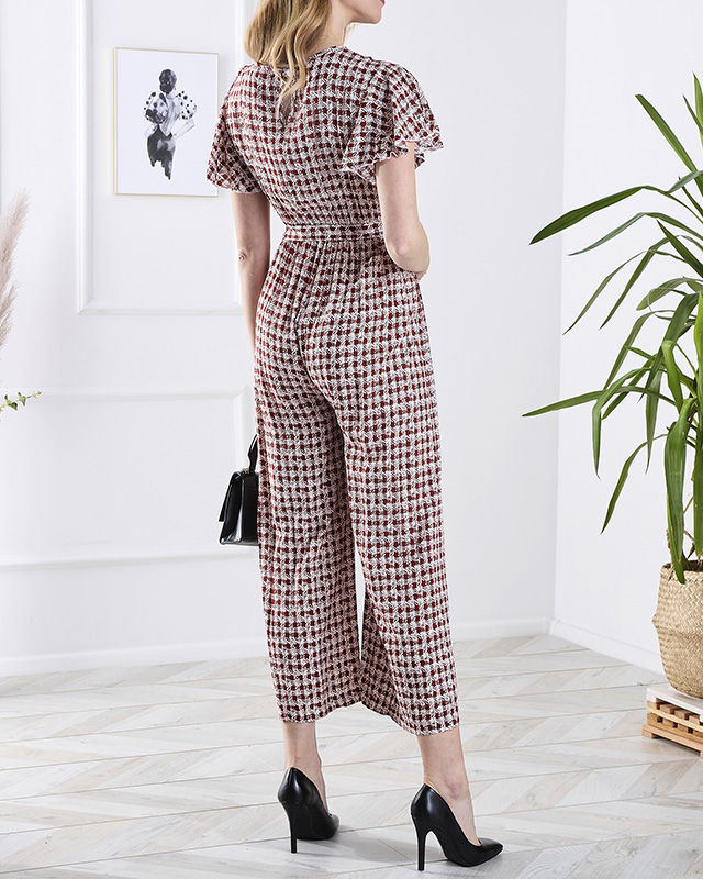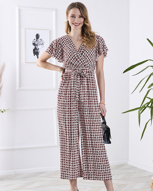 Gemusterter langer Damen-Overall mit Bindeband in Rot- Kleidung