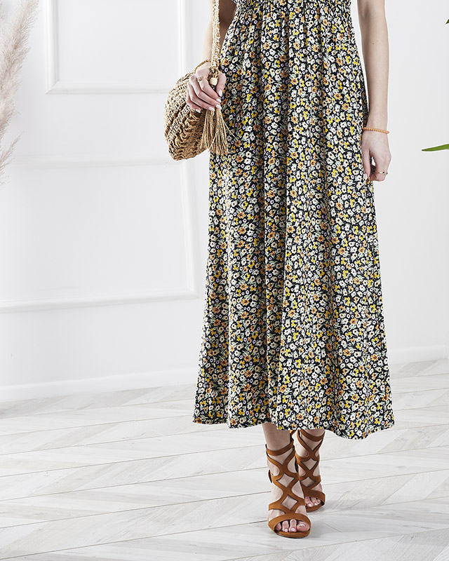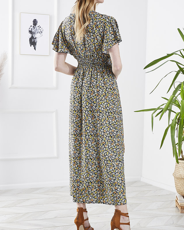 Damen Midikleid mit Blumenmuster in Schwarz- Kleidung