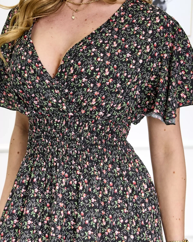 - Florales Damen Maxikleid aus leichtem und luftigem Stoff. Modell mit Umschlagausschnitt, hat kurze Ärmel und elastischen Bund betonen die Taille. Ideal für den Sommer! HINWEIS: Messgenauigkeit (+/-) 1 cm.