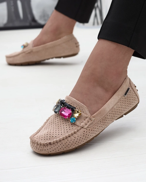 - Schöne durchbrochene Damen Mokassins, verziert mit großen bunten Kristallen. Das Obermaterial ist aus ökologischem Leder, während die Innensohle aus Naturleder besteht. Sie sind eine tolle Dekoration für das tägliche Styling.