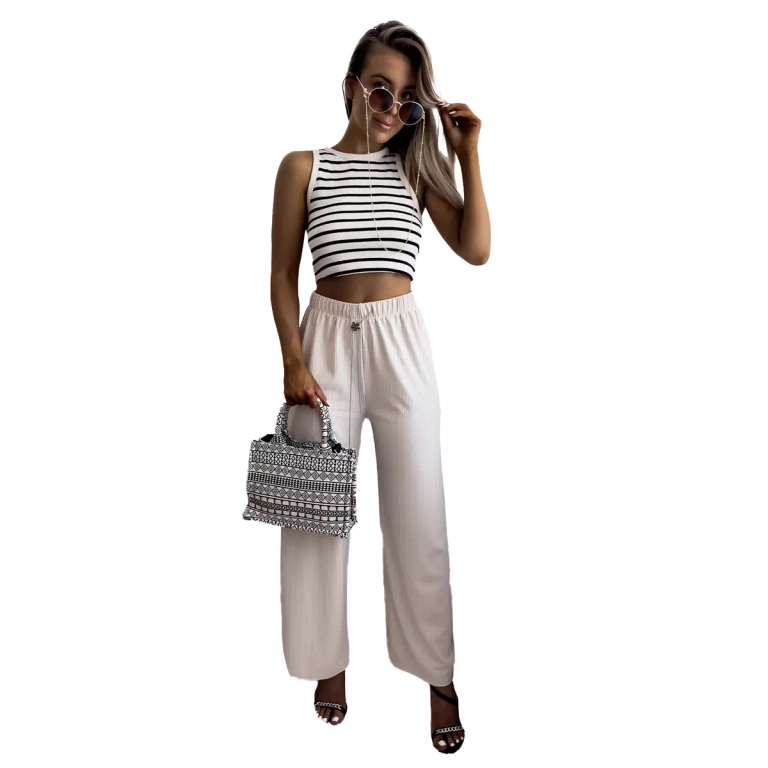 • Leichte, weite Damenhose aus geripptem Stoff. Das Produkt hat einen elastischen Bund und Hosen, die die Taille perfekt betonen. Ein Muss in dieser Saison! HINWEIS: Messgenauigkeit (+/-) 1 cm.