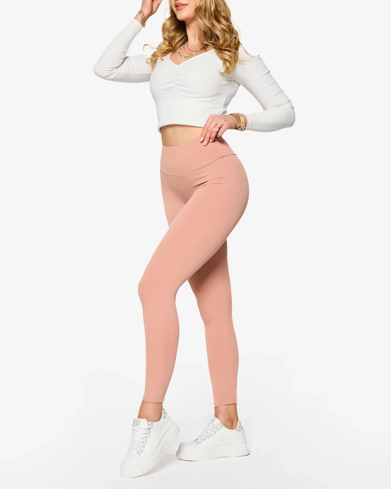 Rosa gerippte Damen-Leggings - Kleidung