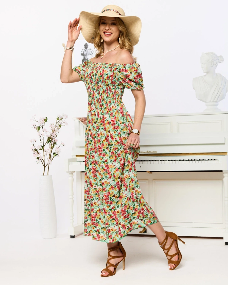 Grünes Damen-Midikleid mit Blumenmuster- Kleidung