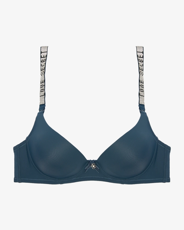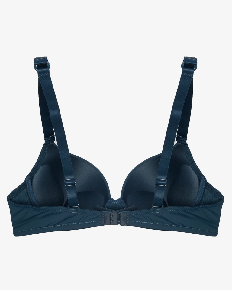 Royalfashion Marineblauer einfarbiger Push-up-BH mit verzierten Trägern