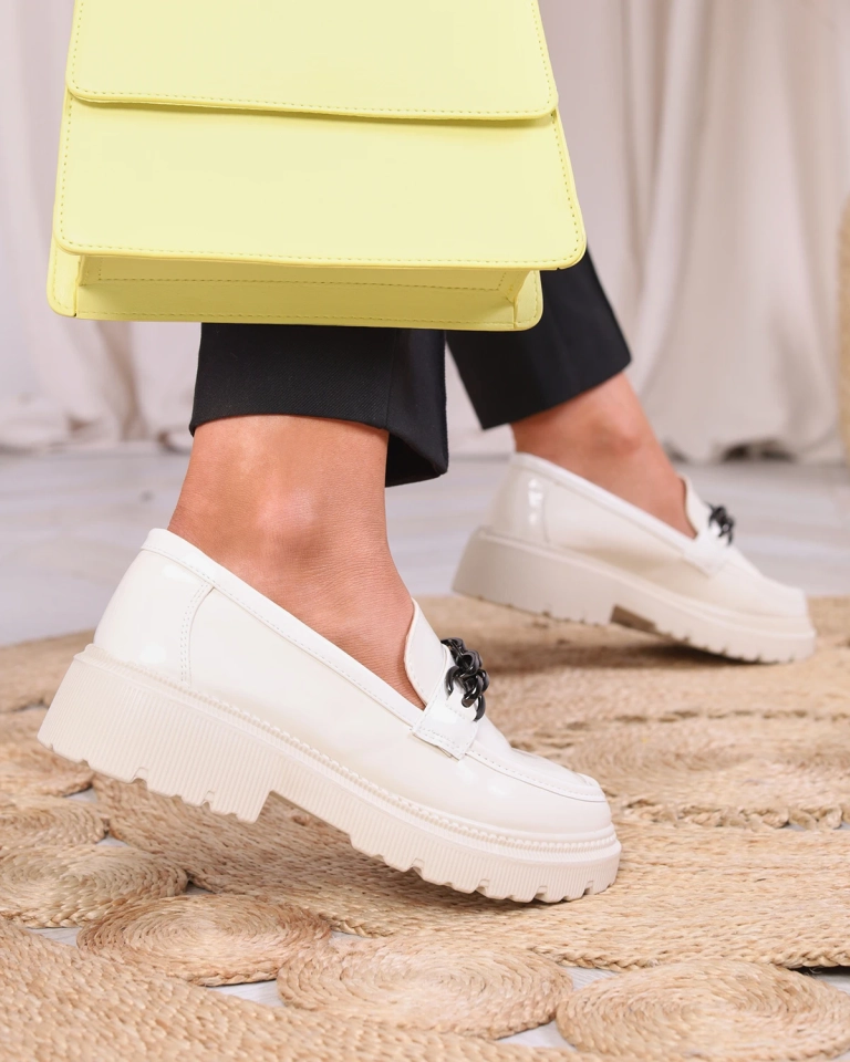 Damen lackierte Mokassins in Creme Farbe Adolos- Footwear