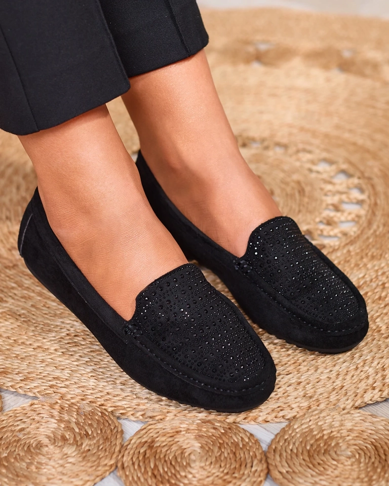 Schwarze Damenmokassins mit Zirkonen Bretika - Footwear