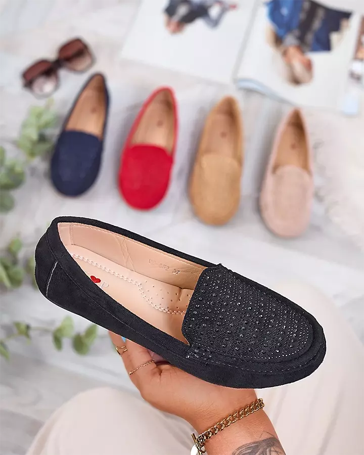 - Modische Damen Mokassins, verziert mit kleinen Zirkonen in passender Farbe. Das Obermaterial ist aus Bio-Wildleder, die Innensohle ist weich gepolstert. Super Ergänzung zu Ihren Casual-Outfits!