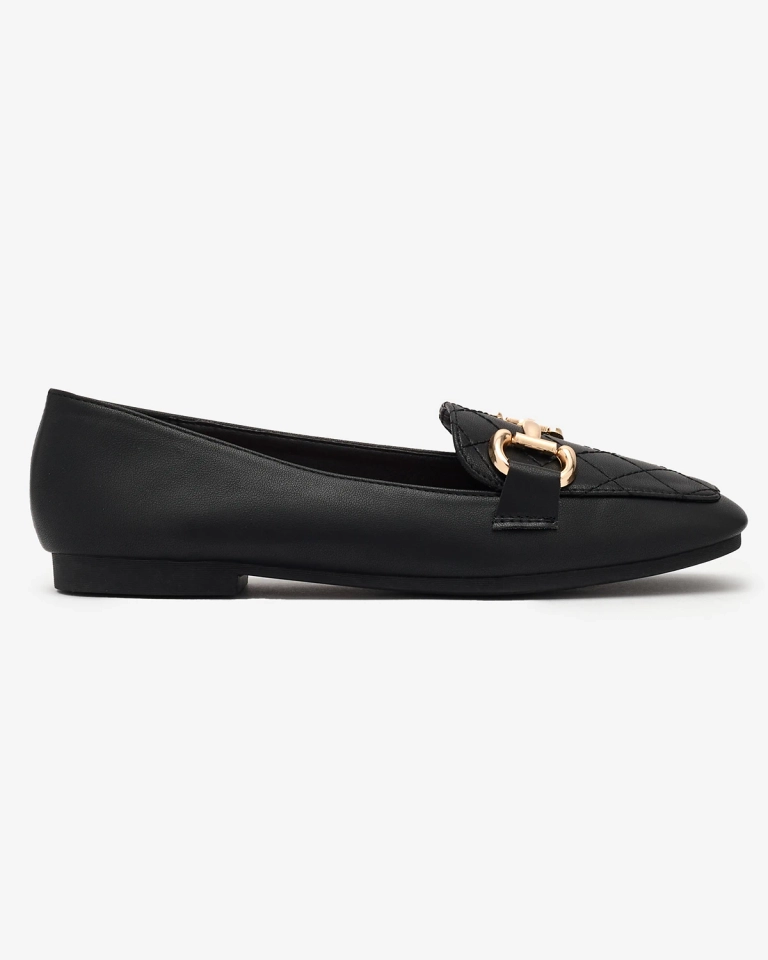 Royalfashion Schwarze Damen Steppmokassins mit Goldverzierung Wetifa