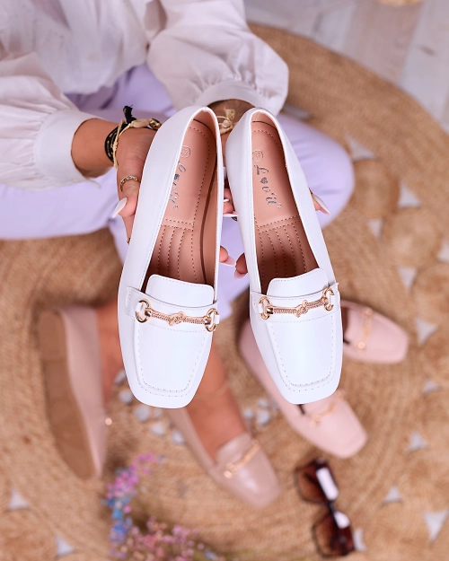 Royalfashion Weiße Damen Mokassins mit Goldverzierung Olerika