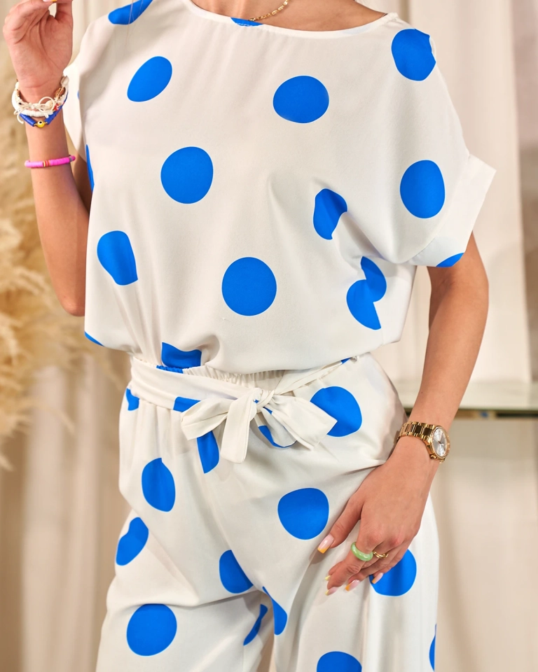 - Damenset aus angenehmem, leichtem Erbsenstoff. Die Bluse hat kurze Ärmel und einen Rundhalsausschnitt. Die stofflich weite Hose ist mit einem elastischen Bund ausgestattet. Außerdem ist ein Stoffgürtel enthalten. HINWEIS: Messgenauigkeit (+/-) 1 cm.