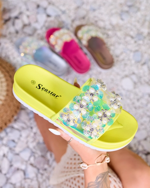 Neongelbe Plateausandalen für Damen mit Maurelle-Verzierungen - Schuhe