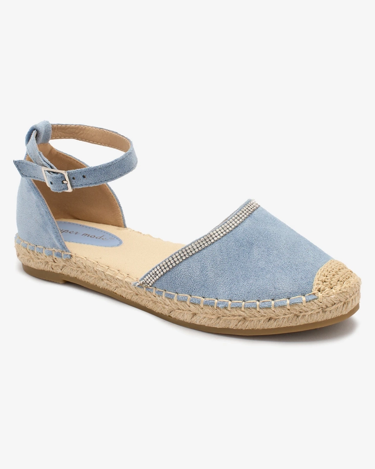 - Einzigartige Damen-Espadrilles aus Öko-Wildleder mit Innensohle aus Stoff. Flache Sohle mit Juteschnur für mehr Komfort. Mit Schnalle und auffälligen Zirkonen verziert. Perfekt für ein sommerliches Styling, das Glamour und Eleganz verleiht.