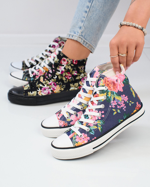 Royalfashion Damen hohe marineblaue Sneakers mit buntem Blumendruck Fahenna