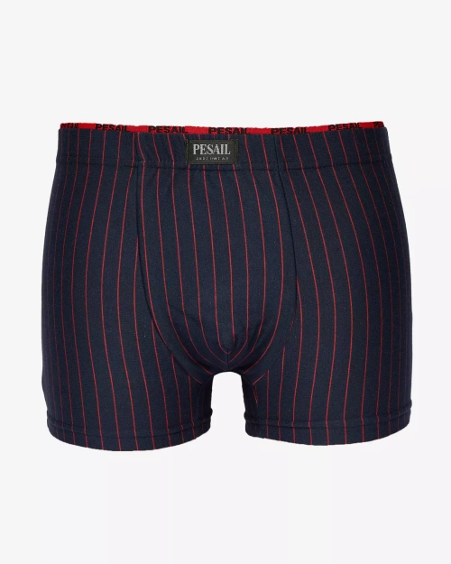 Royalfashion Marineblaue Herren-Boxershorts mit roten Streifen