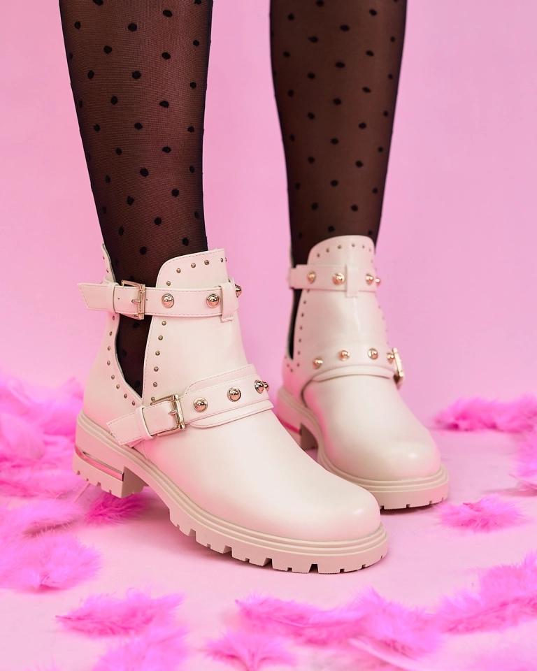 - Mega stylische Damenstiefel mit dekorativen Cutouts. Das Obermaterial ist aus ökologischem Leder und verfügt über dekorative Ziernähte und Schnallenverschluss. Die Innenseite ist mit ökologischem Leder gefüttert. Perfekt um modische Outfits zu kreieren!