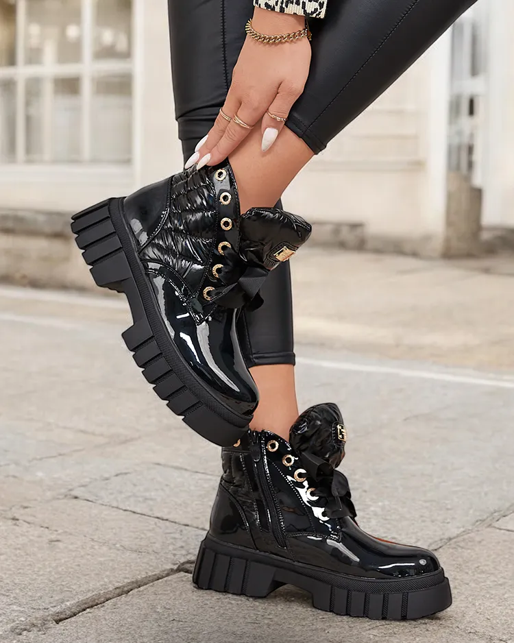Royalfashion Gesteppte lackierte Damenstiefel schwarz Alefro