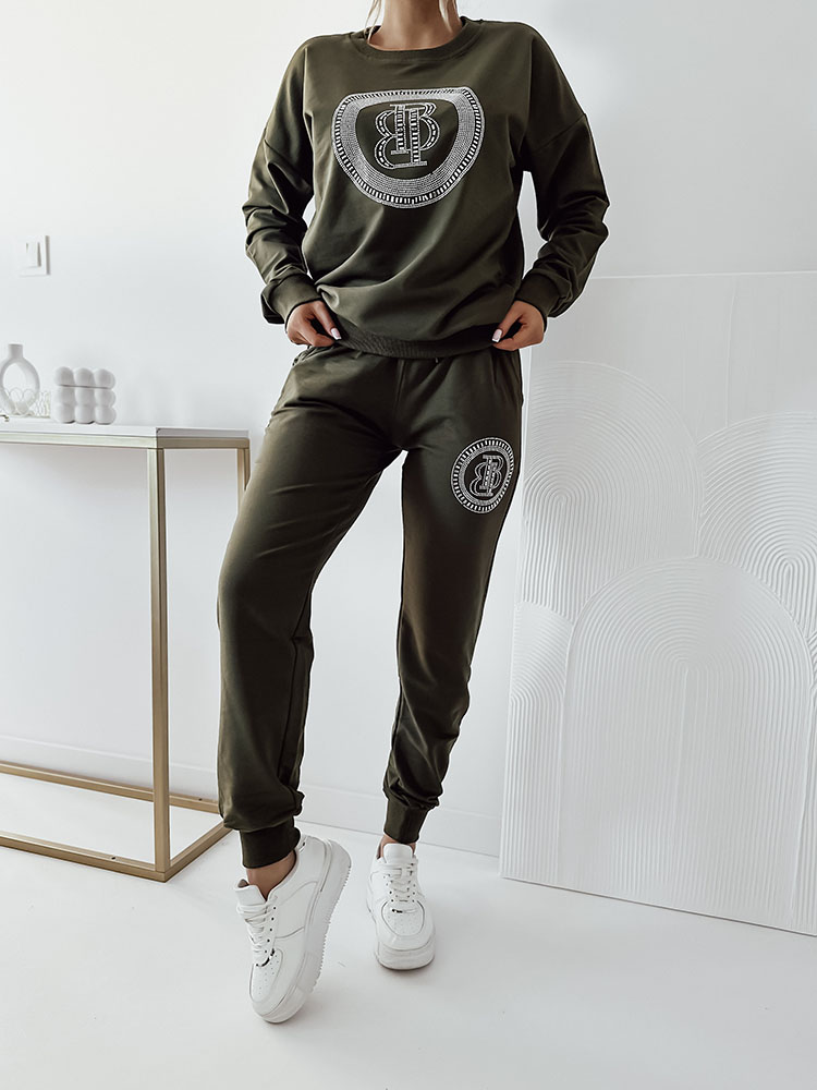 Royalfashion Dunkelgrünes Damen-Sweatshirt-Set mit Zirkonen