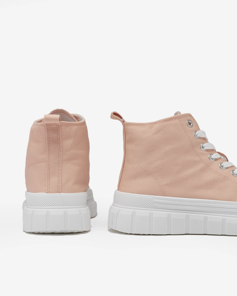 - Zeitlose Damen High Sneakers aus Stoffmaterial. Das Modell steht auf einem massiven Plateau. Das Obermaterial ist geschnürt. Sie passen hervorragend zum Alltagsstyling!