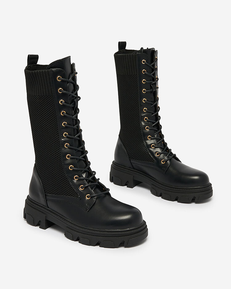 - Einzigartige Damenstiefel aus einer Kombination von durchbrochenem Stoff a'la Mesh und ökologischem Leder. Die Mitte des Schuhs ist mit ökologischem Leder gefüttert. Schuhe mit Schnürung. Super Ergänzung zu Ihren Herbstoutfits!
