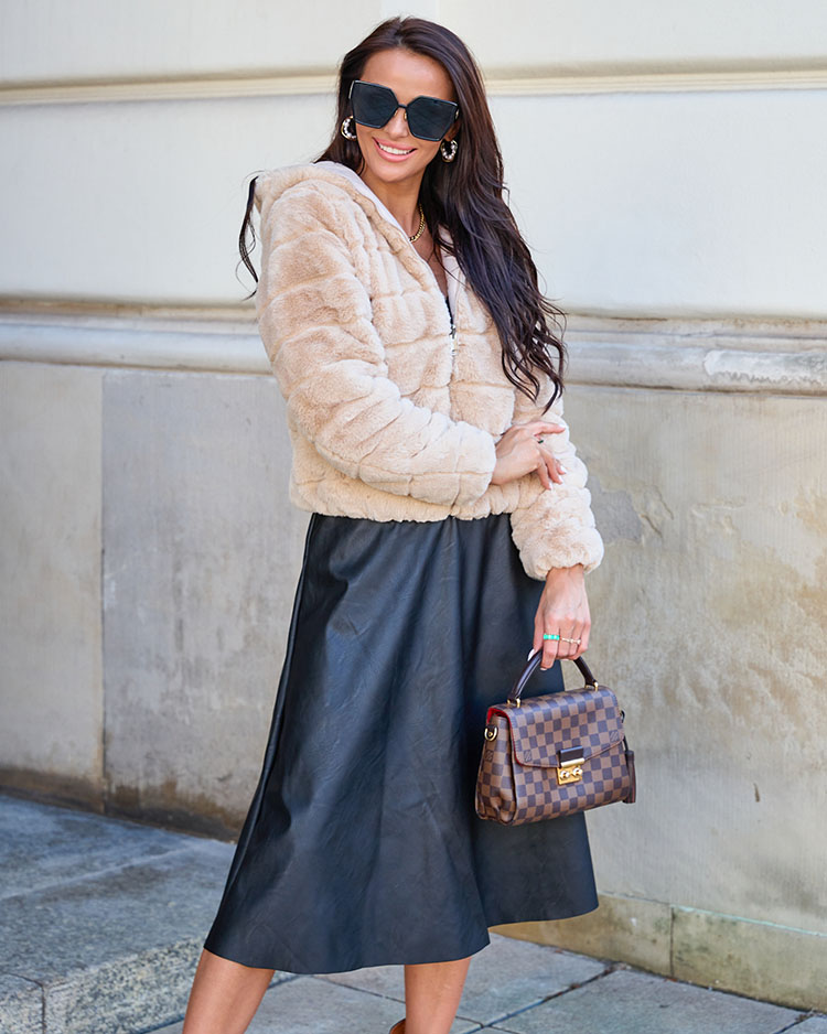 - Sensationelle doppelseitige Damenjacke aus glattem Stoff und angenehm weichem Material a'la Pelz. Sie hat eine weiche synthetische Füllung. Modell mit einer Kapuze, zwei Reißverschlusstaschen und einem Reißverschluss. Ein Hit in dieser Saison!