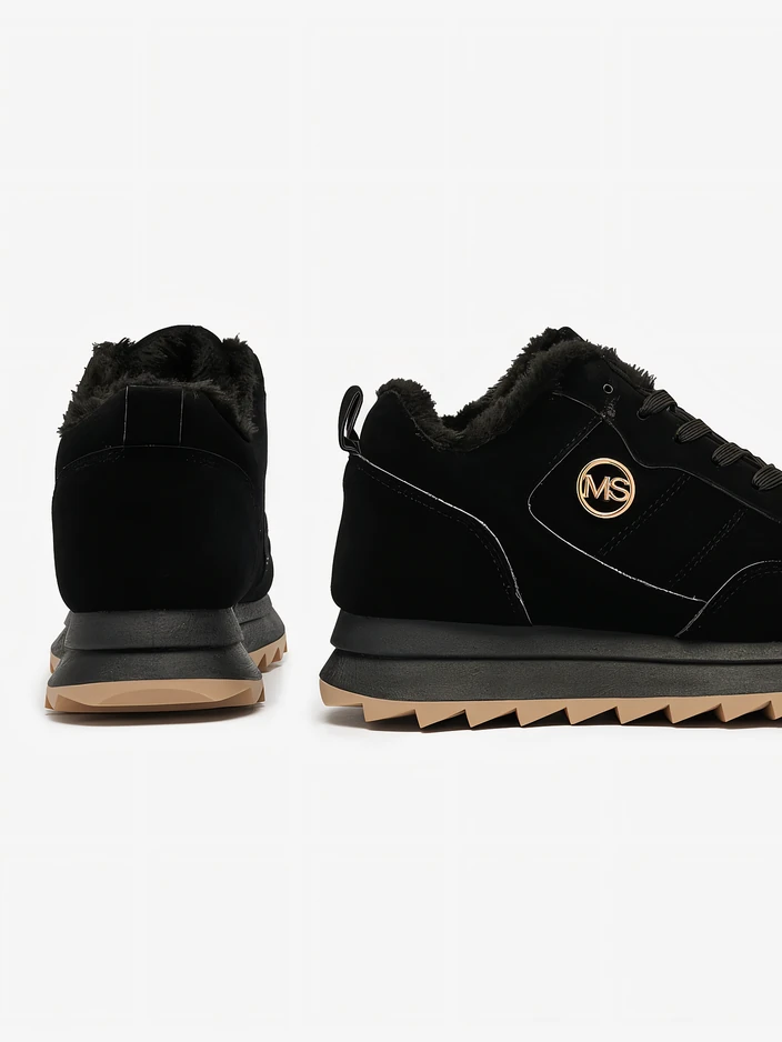 - Damen-Sportschuhe mit warmer Fütterung und dicker Sohle. Der Schnürschuhschaft ist aus ökologischem Nubukleder gefertigt. Innen weiches Fell. Ein tolles Accessoire für Ihre winterlichen Casual-Outfits!