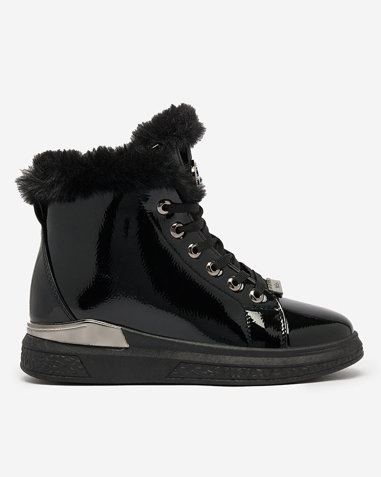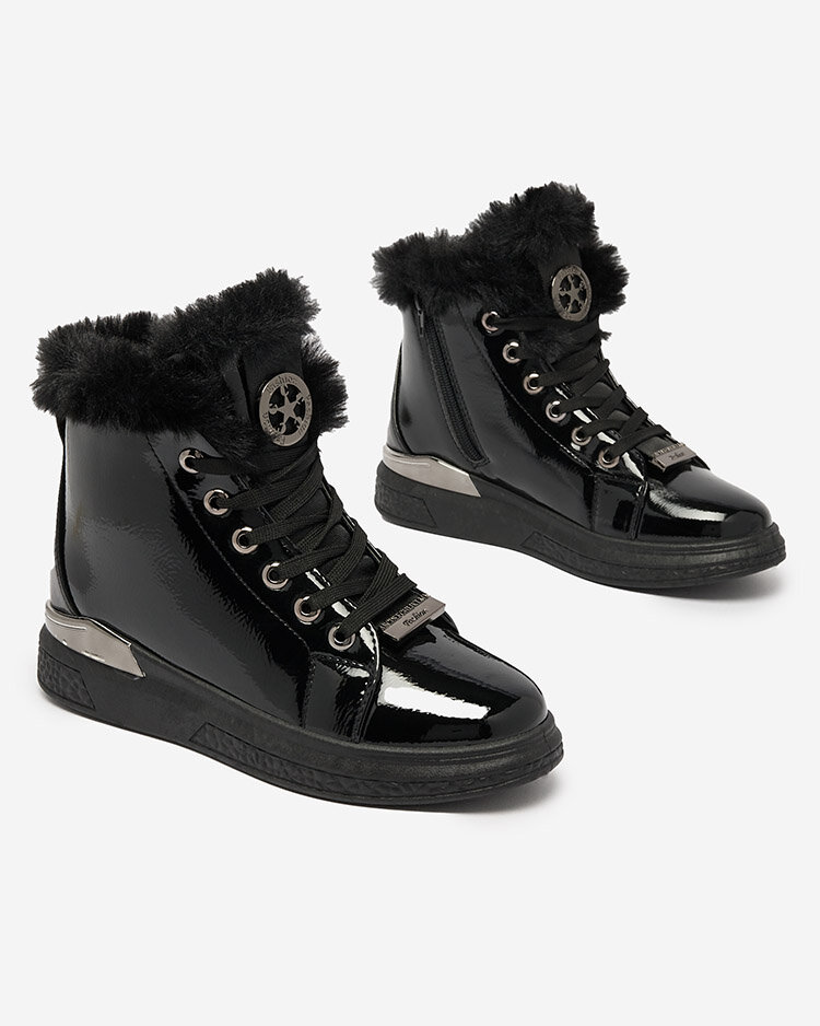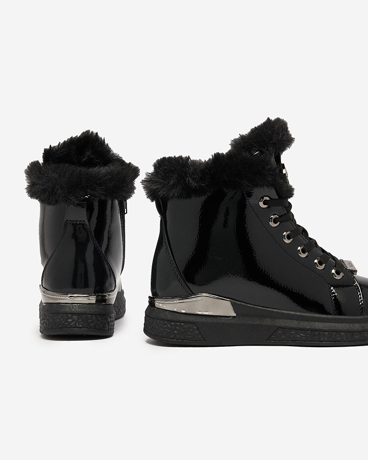 - Damen-Sneaker mit Isolierung, Sportschuhe mit dickerer Sohle. Obermaterial zum Schnüren aus lackiertem Öko-Leder. Innen weiches Fell. Super Ergänzung zu Ihren winterlichen Freizeitoutfits!