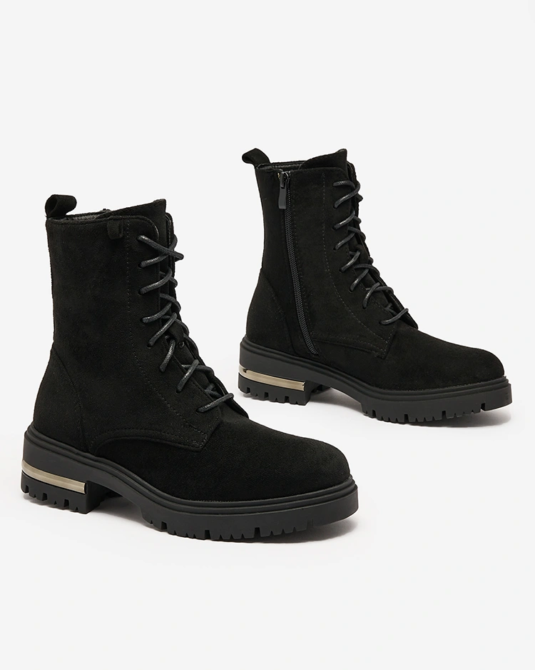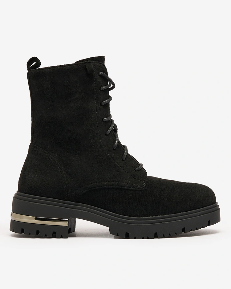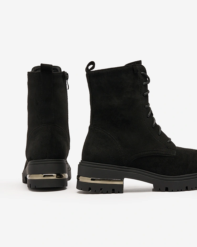 Royalfashion Schwarze Damenstiefel aus Öko-Wildleder mit Kette Azoldi