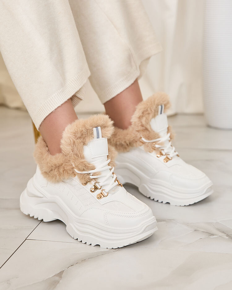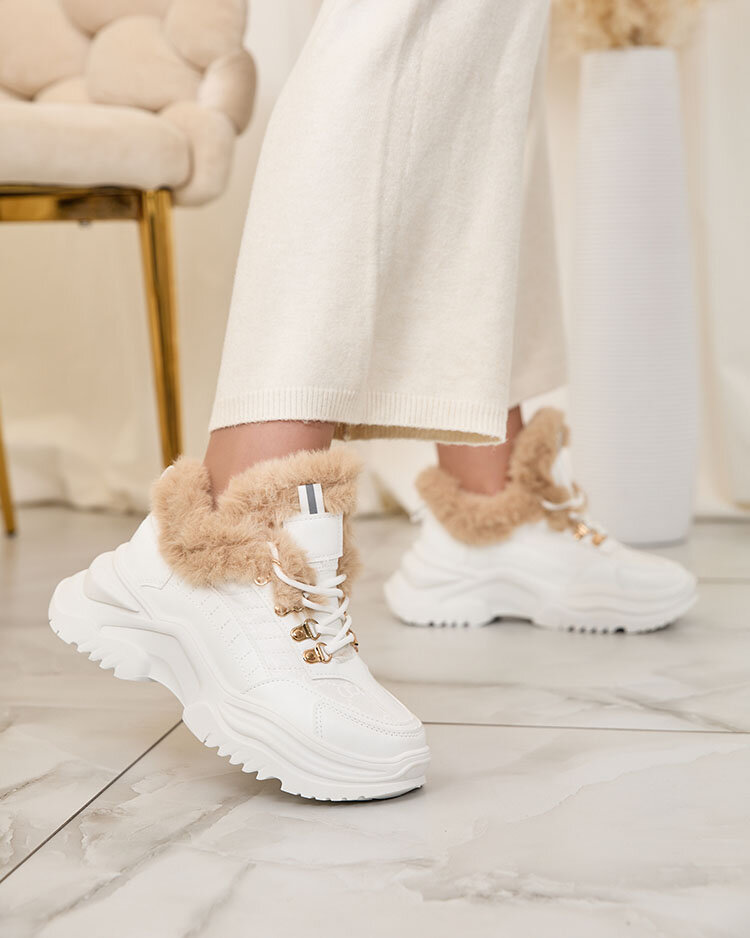 Royalfashion Sportliche weiße Damen-Sneaker mit Fell Kawin