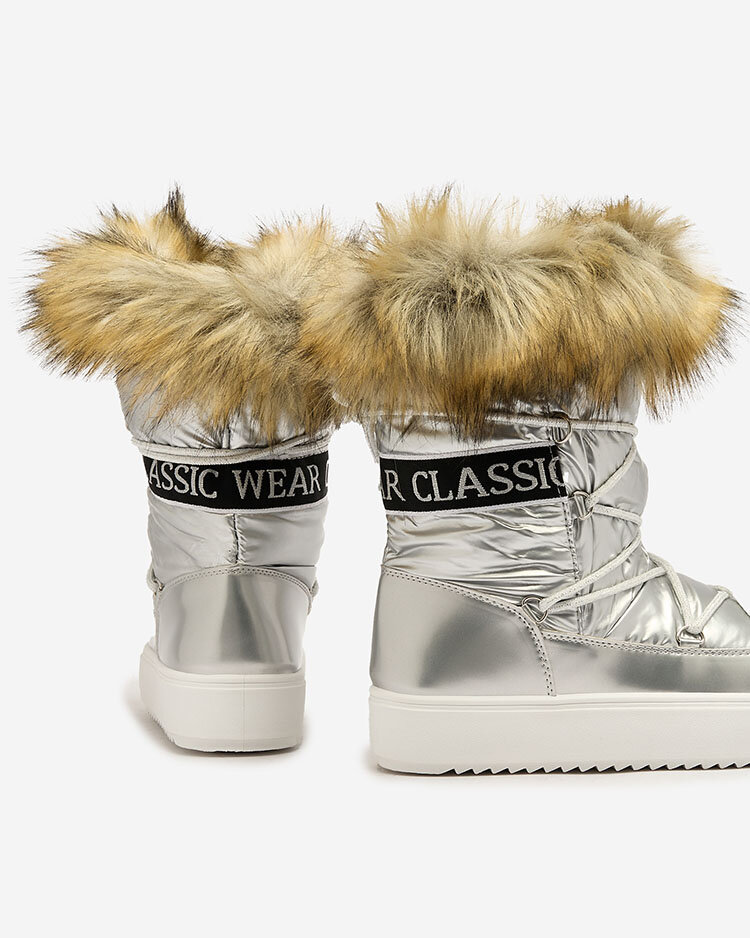 Royalfashion Silberne Schlupfstiefel a'la Schneestiefel für Damen Gomllo