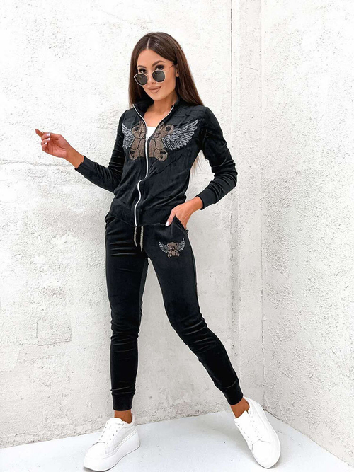 Royalfashion Schwarzes Damen-Sweatshirt-Set mit Zirkonen