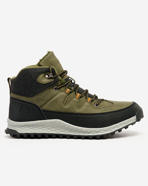 - Herren-Trekking-Trapper mit geschnürtem Schaft. Das Material der Konstruktion ist Öko-Leder und Stoff, die Mitte der Schuhe ist mit dünnem Schafsfell isoliert. Perfekt für die Winterzeit!